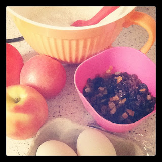 Today, I filled this cake with juicy Pink Lady apples (Peeled, Cored and roughly diced into large cubes) mixed with a couple of generous teaspoons of Cinnamon as well as Sultanas soaked in Brandy.