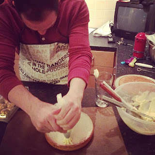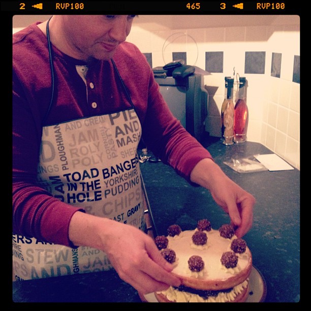 Mark made notes as we went, working out which temperature and time was needed for his Ferrero Rocher Cake to bake perfectly and evenly and we discussed the crazy layout of Tesco in Huntingdon as well as other important issues as we went, alternating at the sink to wash up as the evening went on – It was great teamwork.