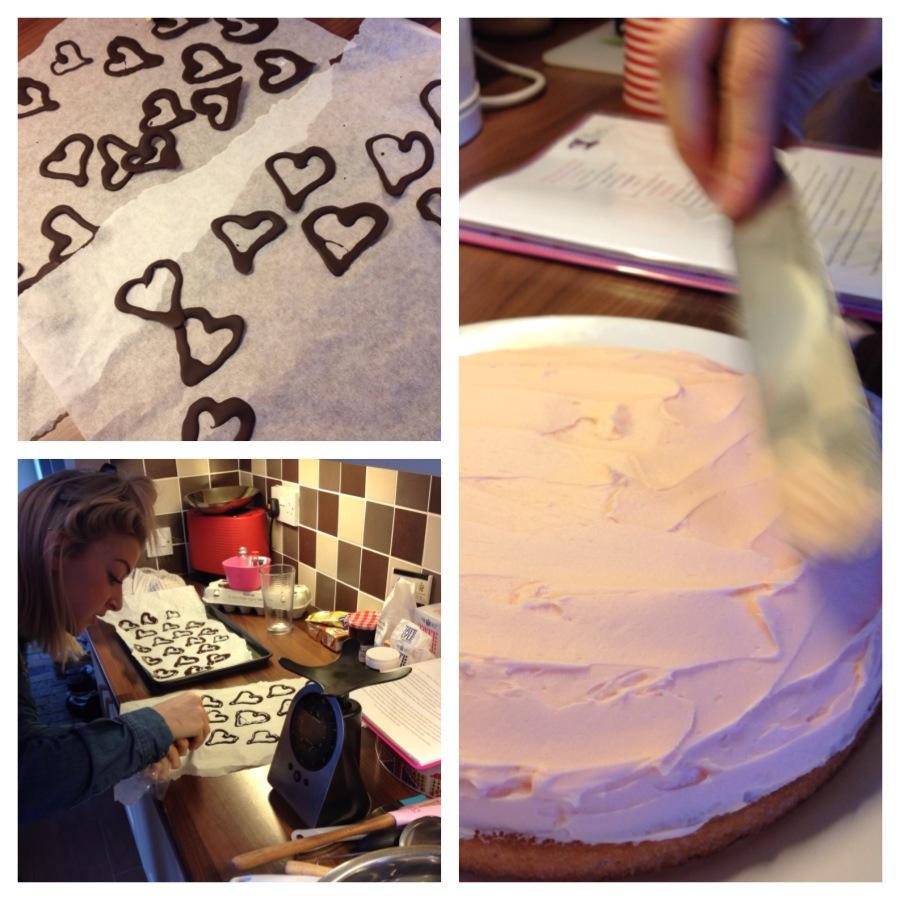 She went for a good sized chocolate piped heart, making various thicknesses, finally settling on the big thick ones to poke into the very top of her piped buttercream to decorate. It looked AMAZING.