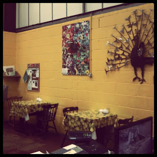 You can admire the local artwork adorning the cafe walls, one piece in particular this week that had caught every eye in the shop as we passed it at the counter, in the form of a large peacock sculpted form metal. The gent behind the counter proudly advised (As he caught me gazing in wonderment) that this was sculpted by one of their own employees in the shop and very impressive it is too!