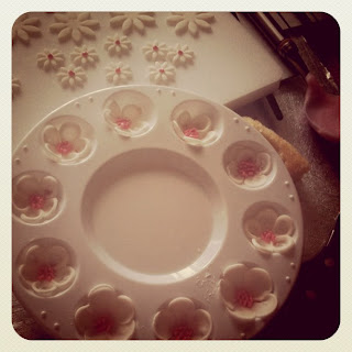 Whilst we were waiting for them to dry off, Cat taught us how to make pretty flowers to decorate the top of the cakes, with beautiful sugar craft techniques that even I could do… And if I can do it, anybody can, trust me!