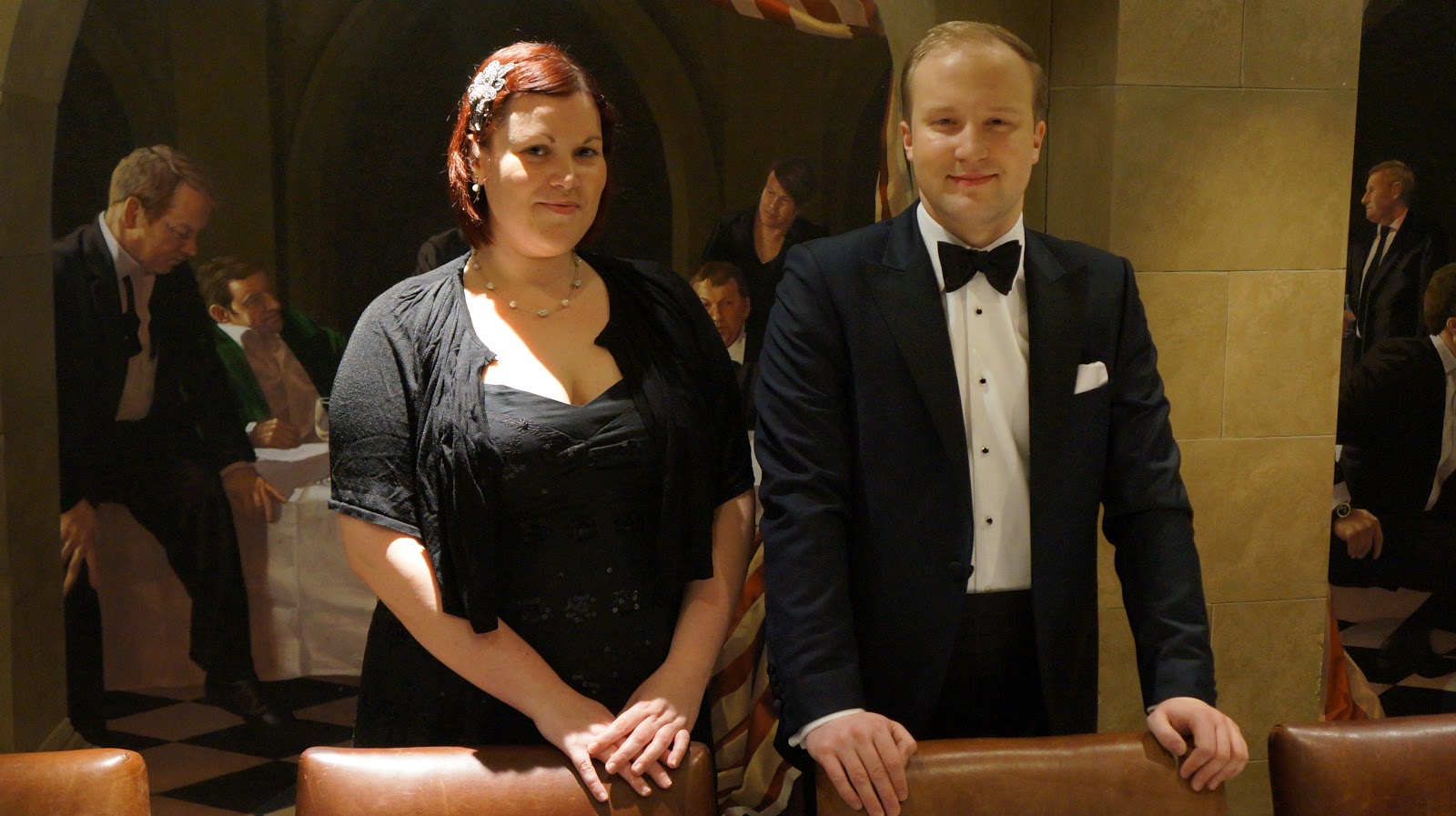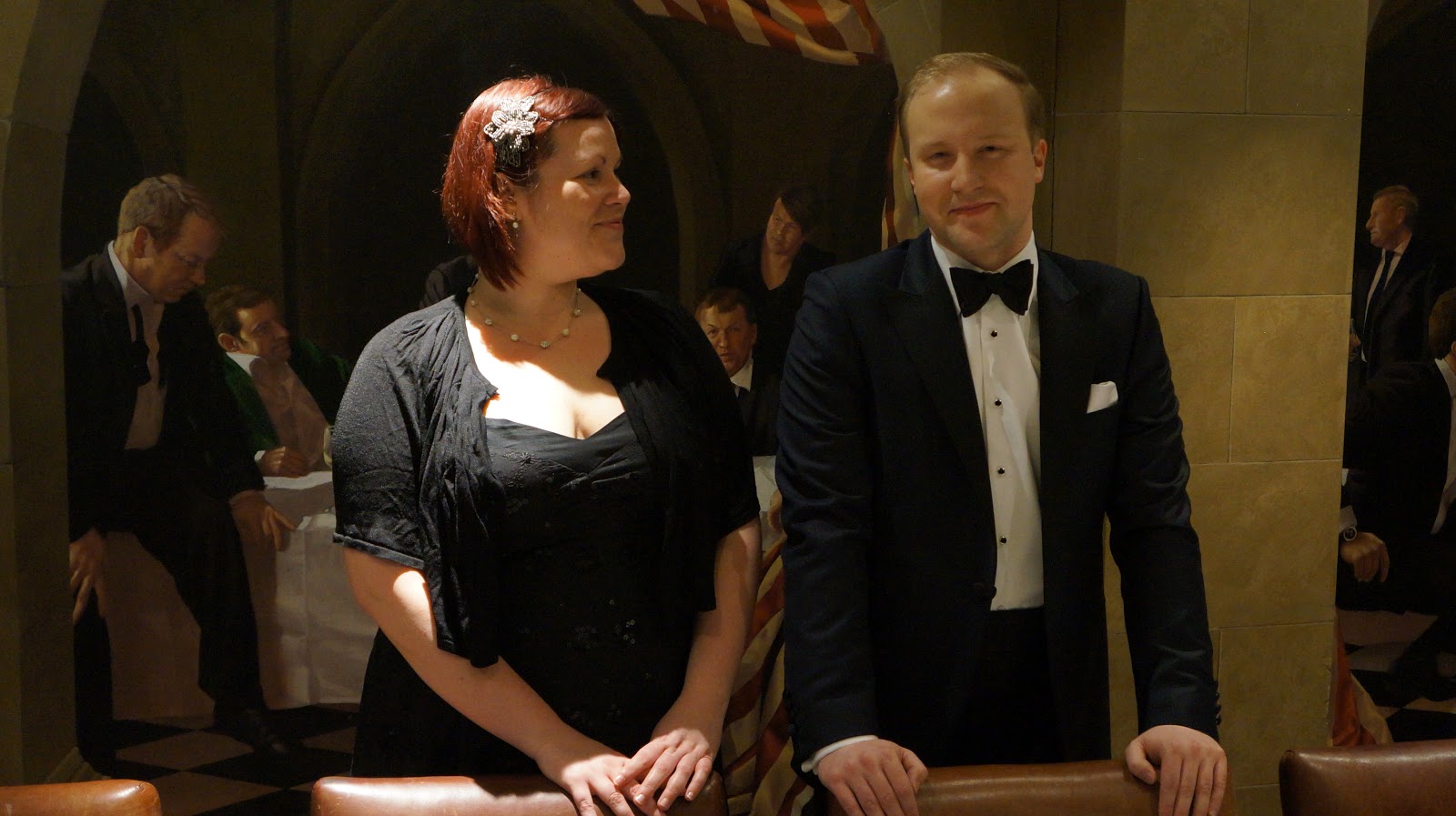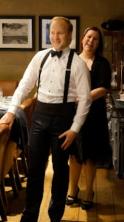 This event gave me a chance to air my best pearls (earrings and necklace darlings!) and my gorgeous “Johnny Loves Rosie” headband, worn around my fringe curls, for a little Downton glamour, whilst William got to wear his Midnight Blue Dinner Suit and bow tie for the first time. I’m not entirely sure who was most excited or even who took the longest to get ready for the occasion… Hehe.