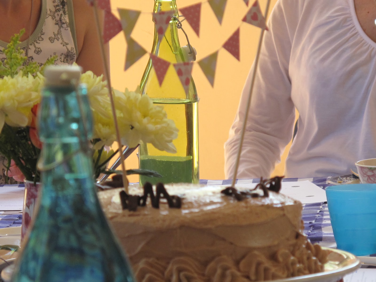 If you are feeling ready to get your arts and crafts bag out again (Yes, I do have a naff arts and crafts bag in my lounge that comes out for such activities ; ) then you can make your own cake bunting using coloured card, shaped into triangles, strung onto a length of nylon and attach to 2 bamboo skewers to hang over your cakey creations. It’s such an easy task, yet it looks fantastic hanging over a Mocha Layer Cake or another dish that needs a little more colour to it. Why not even use the same idea to hang mini Union Jack paper chains over your dish?…..