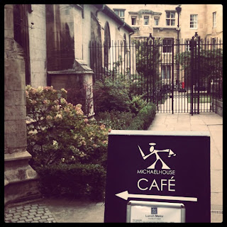 I also decided to stop being a bus snob, and actually took the park and ride for the very first time in around 10 years hehe… It was quick, cheap and easy and I felt like an old fogie with a big bus-induced smile on my face. My dad would be proud! It even stopped right in the centre of town close to a new coffee shop I had wanted to try for some time, Michaelhouse Cafe which is situated in a pretty church on Trinity Street, so I thought it rude not to stop and enjoy a pot of fairtrade tea and a slice of fresh-from-the-oven New York Fruit Cake which consisted of peach, apple and vanilla, it was moreish and very different to anything I had tasted before – I will be taking Mister back here soon!