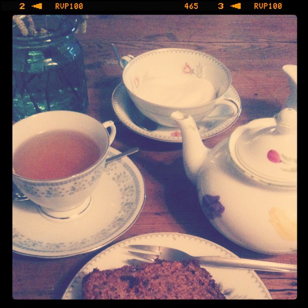 This time around, I went for a pot of Darjeeling along with a lovely slice of Fruit Tea Loaf from their ever changing cake selection, which came with a pretty little cake fork for a civilised nibble. I had great fun sipping from my mis-matching tea ware and watching the world go by whilst I did so.