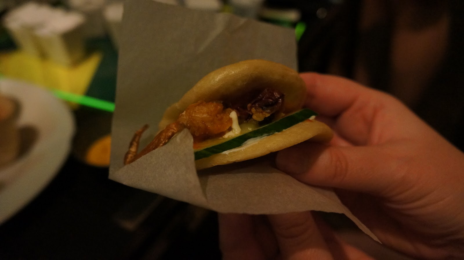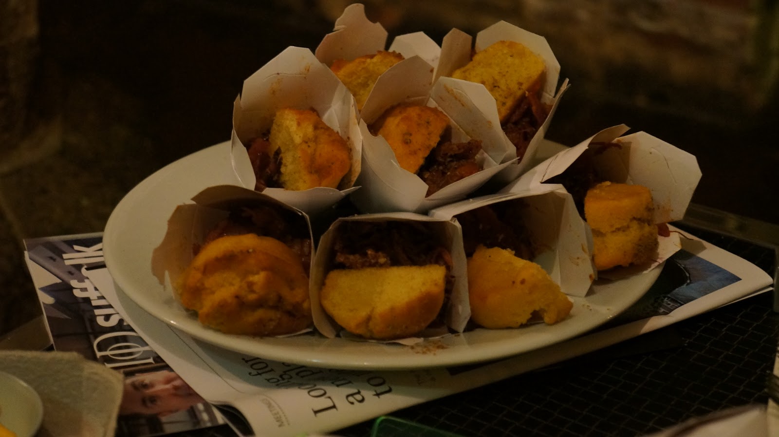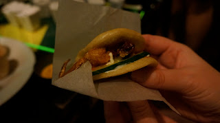 The food varied from cheese & onion popcorn boxes, through to Oysters, pulled pork wraps with apple coleslaw and even maple & bacon doughnuts… We were fed well and certainly didn’t go hungry! Oh, not forgetting the soft boiled quails scotch egg which was my fave treat of all, served in an egg carton which put a smile on our faces.