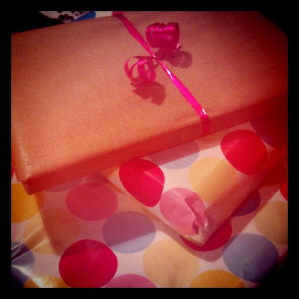 So, on it went and off we set playing a very large version of “Pass the parcel”, chucking our gifts around, the cheaters slowing down when they were holding a gift they had felt up and decided they wanted (tut tut tut) and we managed to keep them moving around the table throughout the entire song. Once the needle had lifted to stop the song, the gifts we were holding were ours to open & keep and laugh over just how unwanted they were!