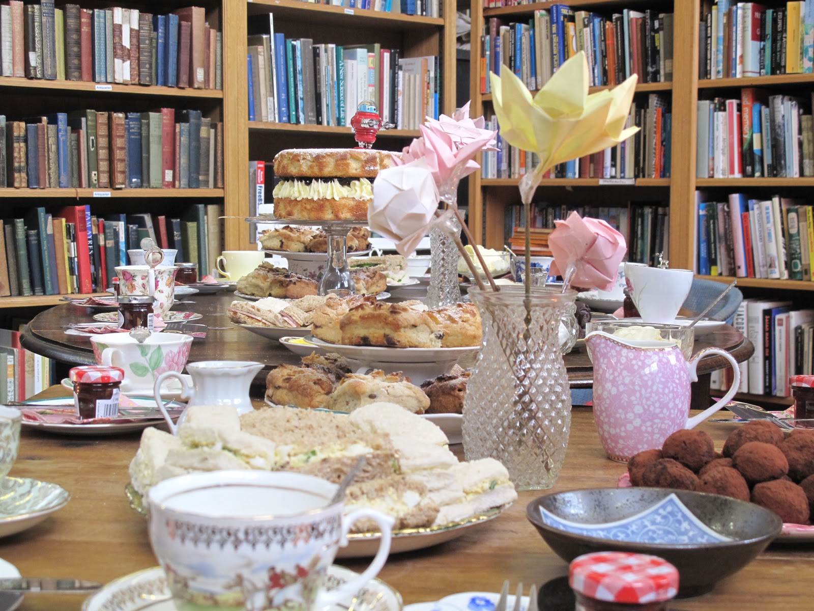 The Secluded (Book Club!) Tea Party was held on Sunday, 27th March at 2pm, and we were granted access to the best possible venue for this event…Plurabelle Books in the very heart of Cambridge… yet secluded within beautiful landscaped city grounds! It was Perfect for a Book Club theme to the proceedings!