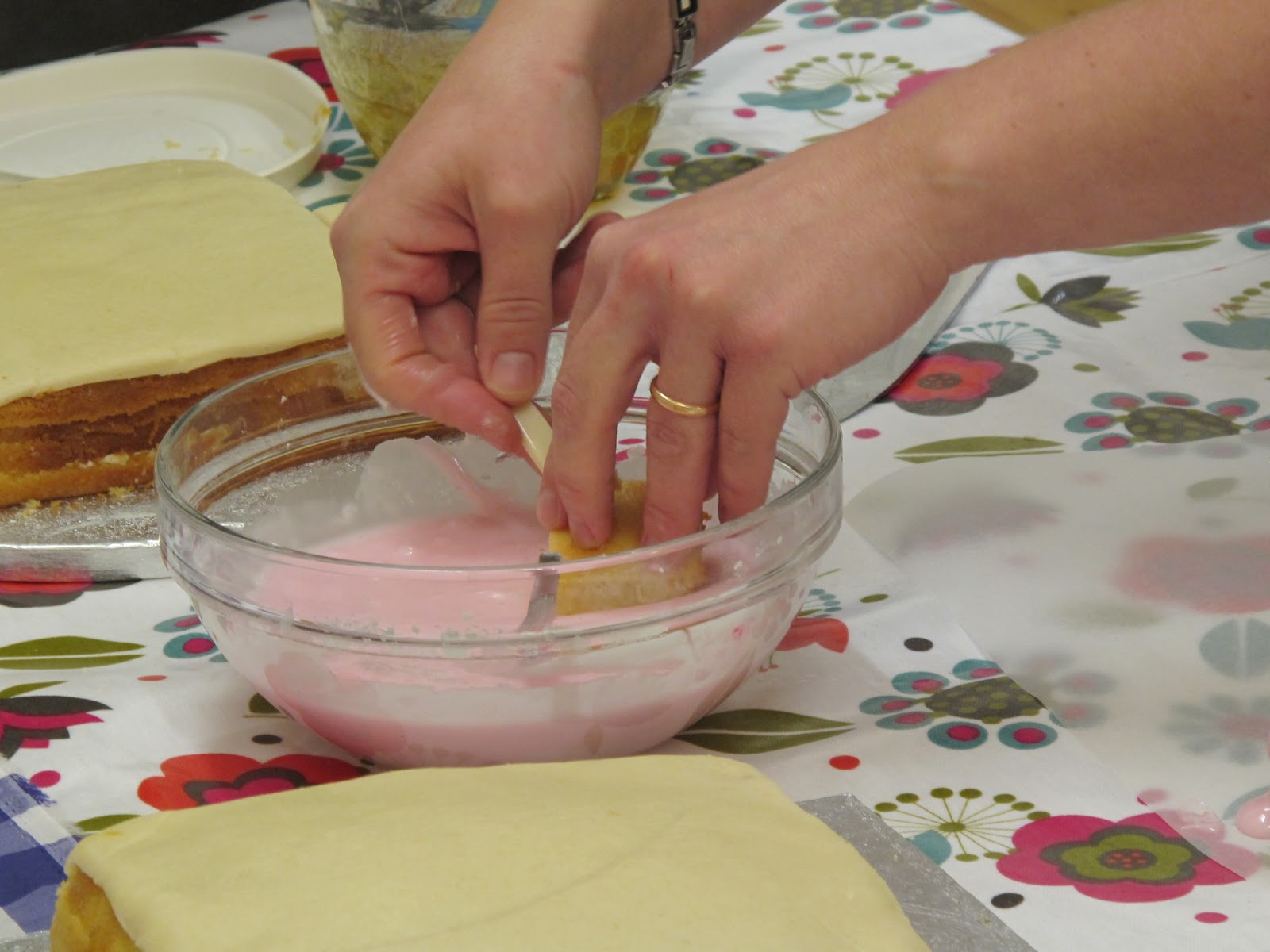 We had marzipans tops disappearing, only to be found under the table later on, parts of the cake being left behind in the bowl… very amusing and a great bonding activity for a group of ladies who had never met before.
